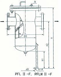 (4)籃式法蘭連接直通封頭式過濾器(PFL II—F型) (PN≤5.OMPa DN200—500)