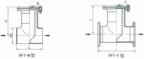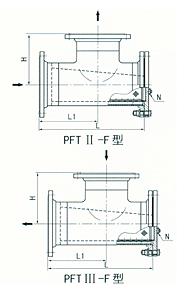 (2)T型法蘭連接直通式過濾器(PFT-F型)(DN50~400,PN≤5.OMPa)